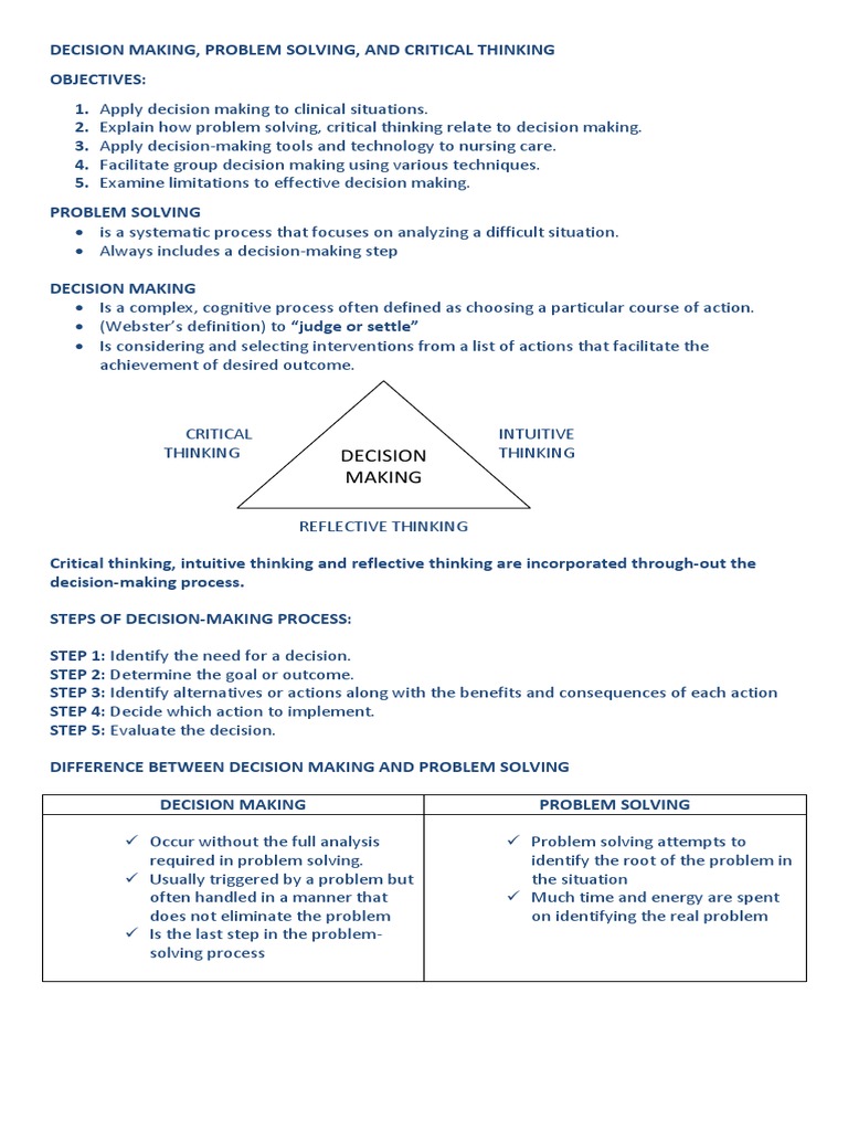 Thinking and decision making paper. The assignment is:• Thinking and Decision Making Paper o Prepare a 1,,word paper in which you analyze at least three different types of thinking styles. o Compare and contrast the three different types of thinking and comment on how each affects the critical-thinking process. o Apply critical thinking to the decision Thinking and Decision Making Paper. University of Phoenix. �. Critical Thinking. Critical thought is an all-encompassing process that is integrated and focuses on a single point, issue, or problem, from a systematic and analytical manner In the corporate world, innovative problem solving, critical analytical thought and sound decision-making key the success and dominance of leaders and organizations. This paper examines the relationship between critical thinking and the decision-making process, explains the course textbook position, and relates how both processes apply to the author’s workplace